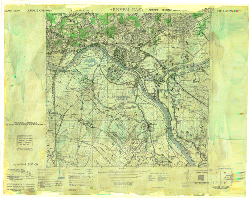 De zoektocht gaat door in de Gelderland bibliotheek waar ik misschien wel honderd publicaties van heemkunde stichtingen vergeefs doorneem. Maandenlang wordt op vrijdagen de Universiteits bibliotheek van Wageningen bezocht om met een oude Sovjet stereokijker te turen naar geallieerde luchtfoto’s van Gelderland. Daar wordt duidelijk dat het spoor op de luchtfoto uit het Gelders archief niet op zichzelf staat maar dat er een lijn van veldversterkingen herkent kan worden langs het Pannerdensch Kanaal en Nederrijn tot Wageningen en tussen Wageningen en het IJsselmeer. Het betonnen objectje in Arnhem is waarschijnlijk onderdeel van een groter geheel… De dames van de bibliotheek van de Koninklijke Militaire Academie slepen voor mij met loodzware naslagwerken in mijn speurtocht naar een verklaring. Daar duiken voor het eerst de termen ‘Einsatz-Panther’ en Organisation Todt op! In het najaar van 2008 klop ik aan bij De Gelderlander en vraag om hulp. Mijn verhaal en vraag om hulp aan de lezers wordt opgepakt. Het levert een mooi artikel op en welgeteld één reactie van de heer B. Leyte die mij een zeldzame geallieerde kaart geeft met verdedigingswerken in Arnhem. Na deze actie via de krant besef ik dat ik lokaal geen antwoorden meer ga vinden.